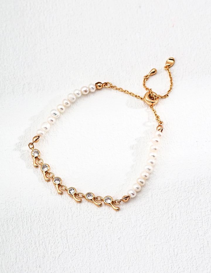 Two - Tone Zircon & Pearl Bracelet